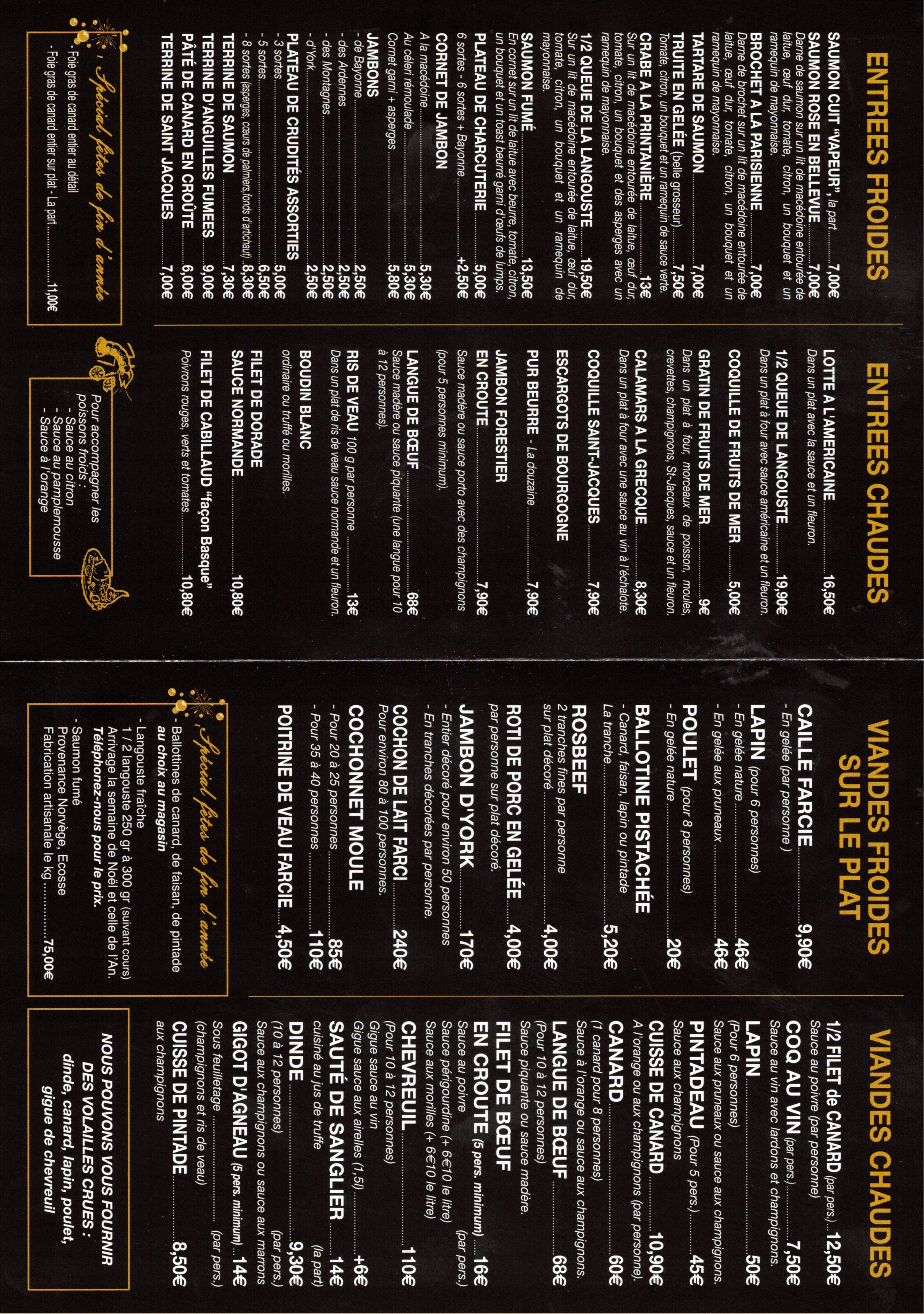 Mathon Traiteur vous propose notamment de la viande de bœuf, de porc ainsi que d'agneau. Notre boucherie vend aussi de la volaille fermière provenant de producteurs locaux et du veau à la découpe. Notre maison assure également la fabrication artisanale de charcuterie et la fumaison de poitrine de porc ou de jambon. Un large choix de pâtés, saucissons et terrines, ainsi que le véritable jambon d'appellation Bayonne sont à découvrir dans notre magasin. En période de chasse, notre conserverie familiale vous propose la transformation de votre gibier en pâté ou en sauce. Votre traiteur concocte par ailleurs des plats cuisinés tels que la blanquette de veau avec du riz, des jardinières de légumes, de la langue de bœuf, de la flamiche aux poireaux, des paupiettes de veau, de la ficelle picarde ou du rôti de dindonneau farci. Les plats proposés varient selon les saisons et le jeudi et le vendredi, notre offre est complétée par des poissons blancs ou du saumon.